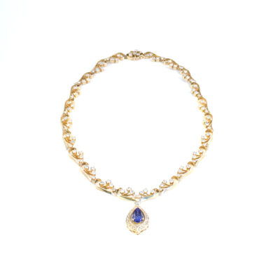 14K Yellow Gold Pear Tanzanite and Diamond Necklace