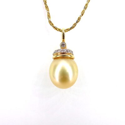 14k Yellow Gold Cultured South Sea Pearl/Diamond Pendant and Chain