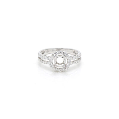 18K White Gold Diamond Halo Semi-Mount Ring with Diamond Shank
