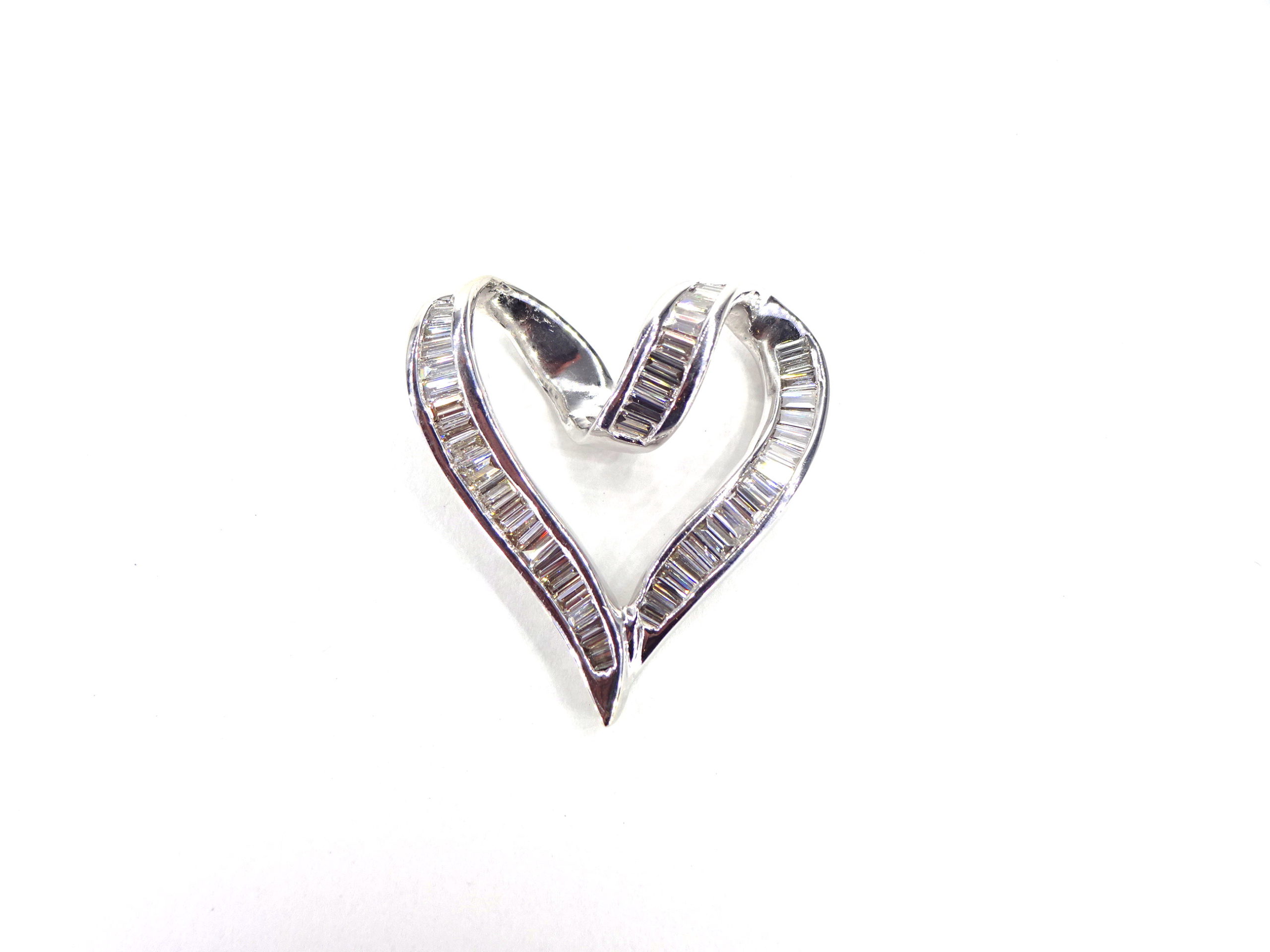 / 14k White Gold Baguette Diamond Heart Pendant