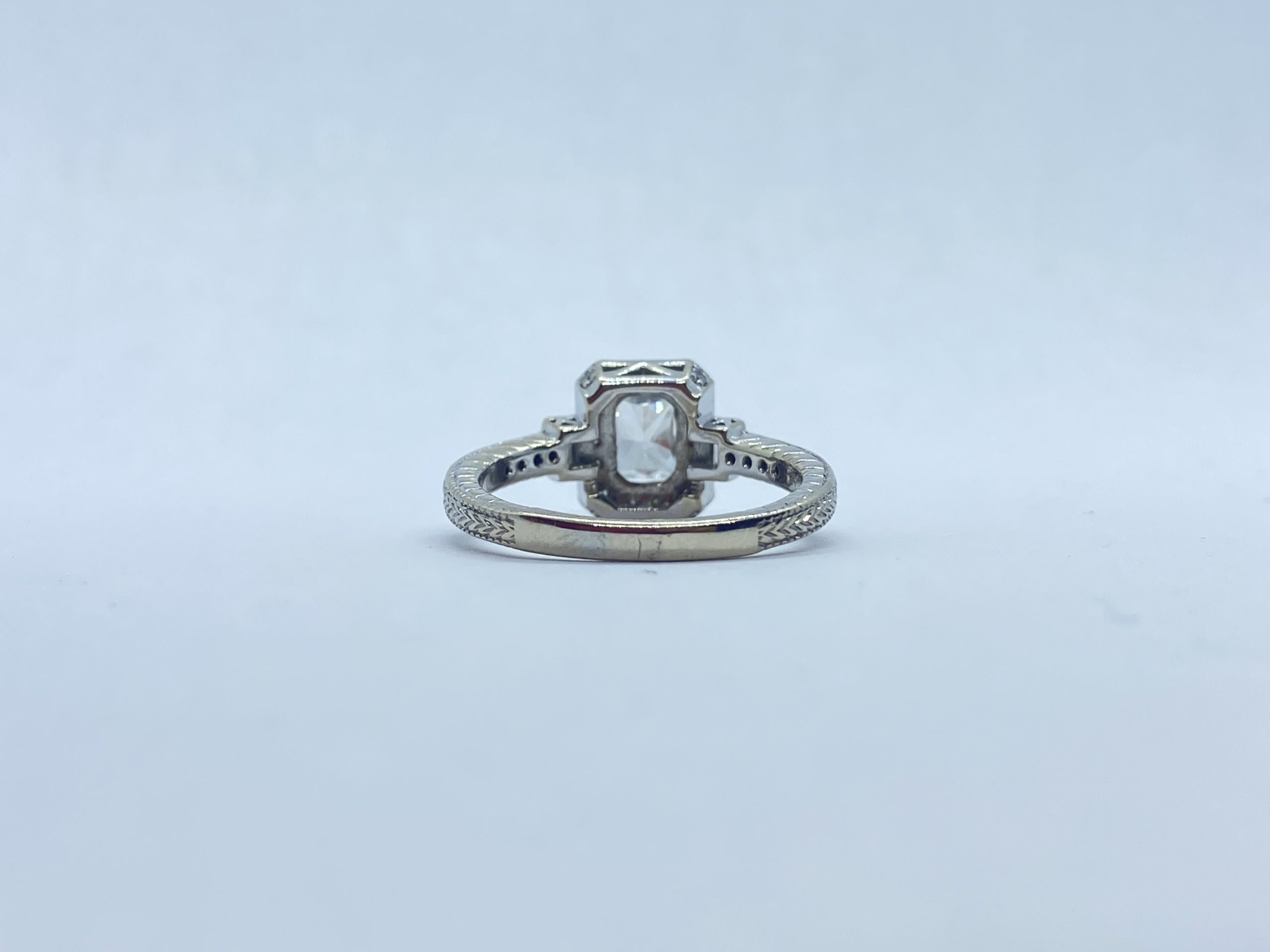 1.39ctw radiant cut diamond ring with emerald cut side stones