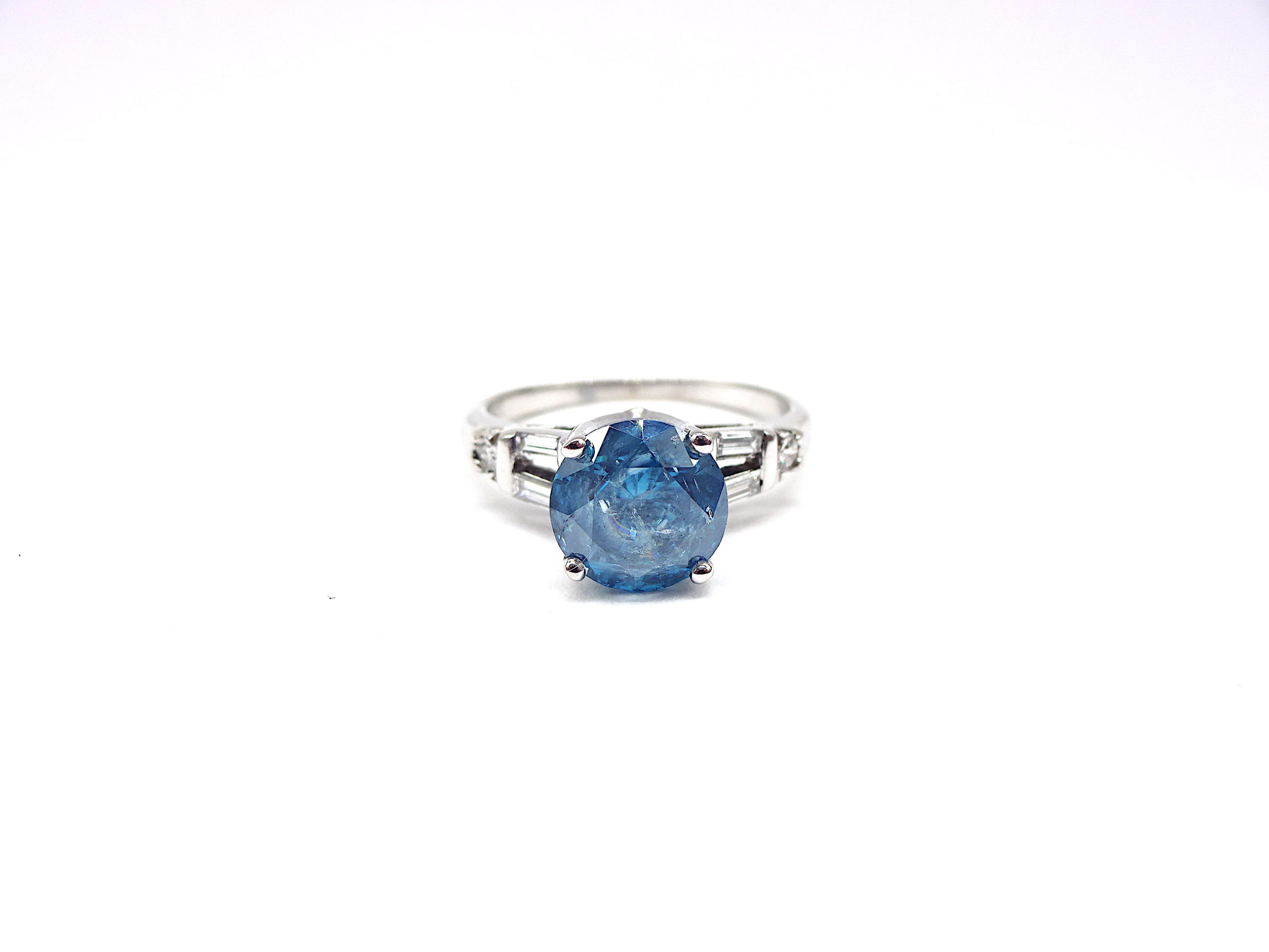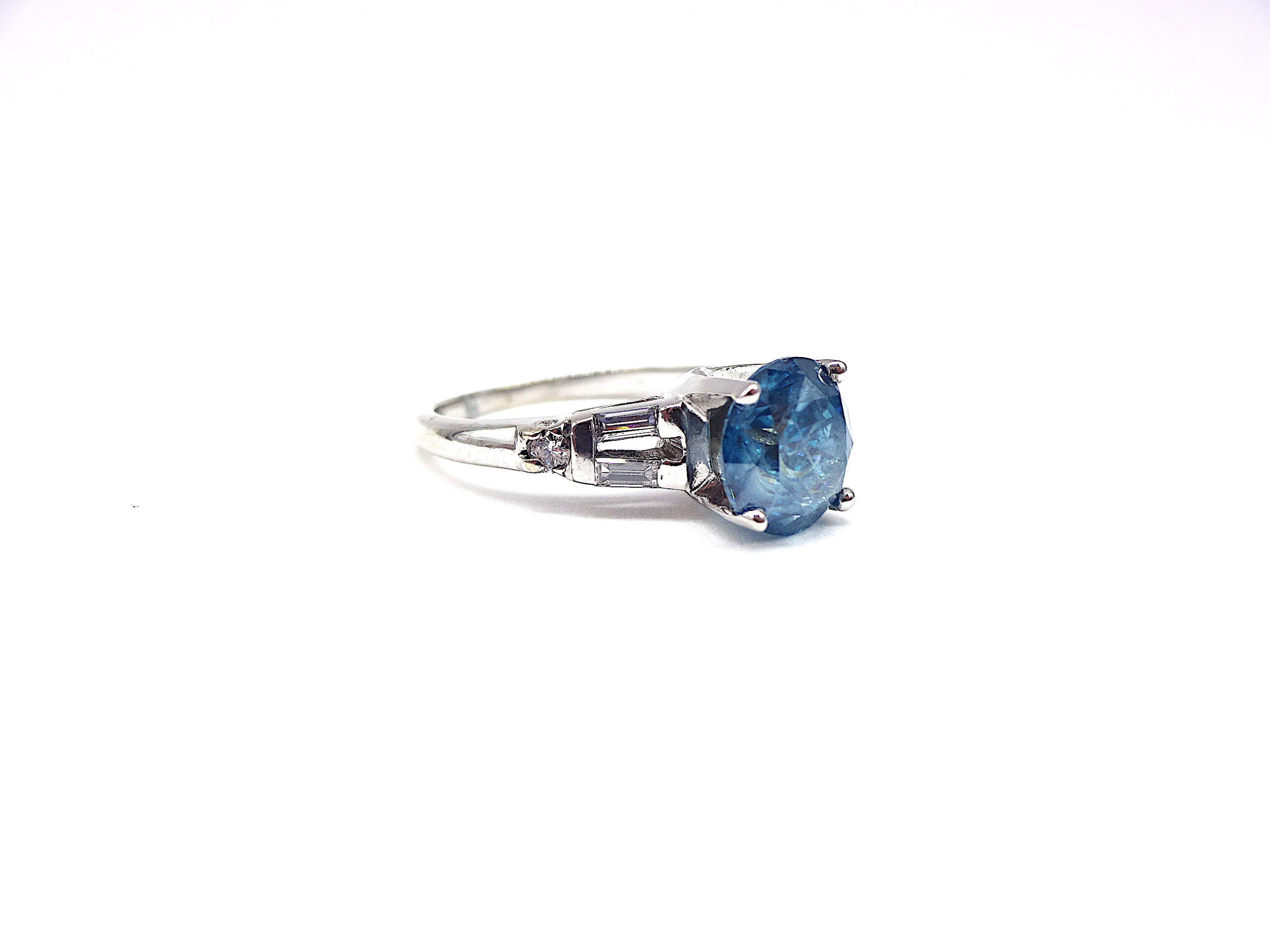 / 14k White Gold Irradiated Blue Diamond Ring
