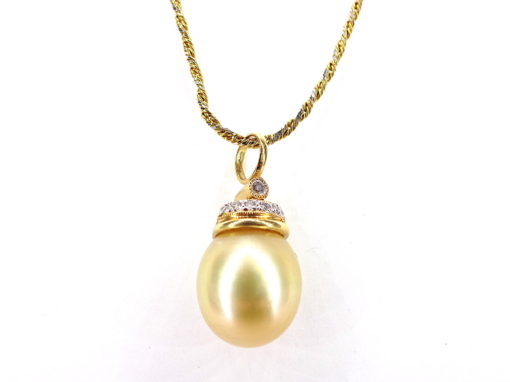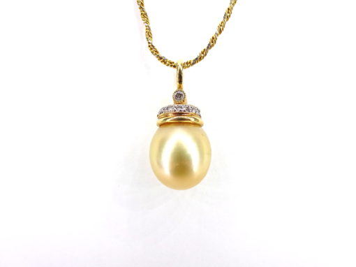 14k Yellow Gold Cultured South Sea Pearl/Diamond Pendant and Chain
