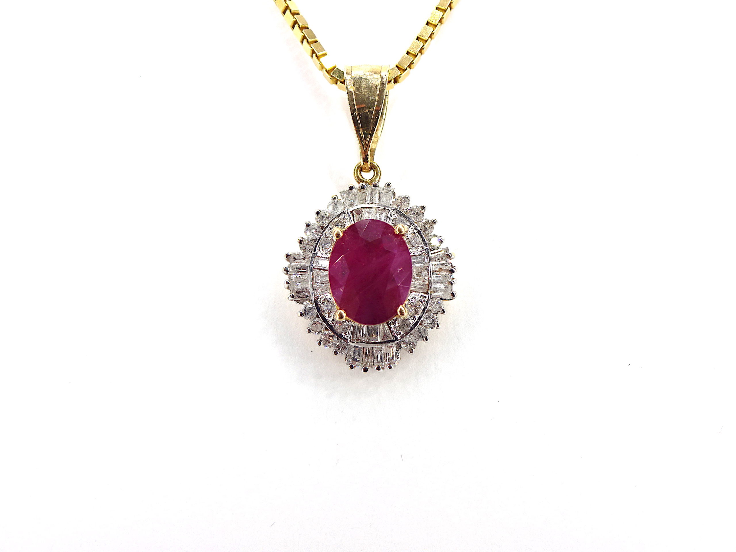 14k Yellow Gold Ruby/Diamond Pendant and Chain