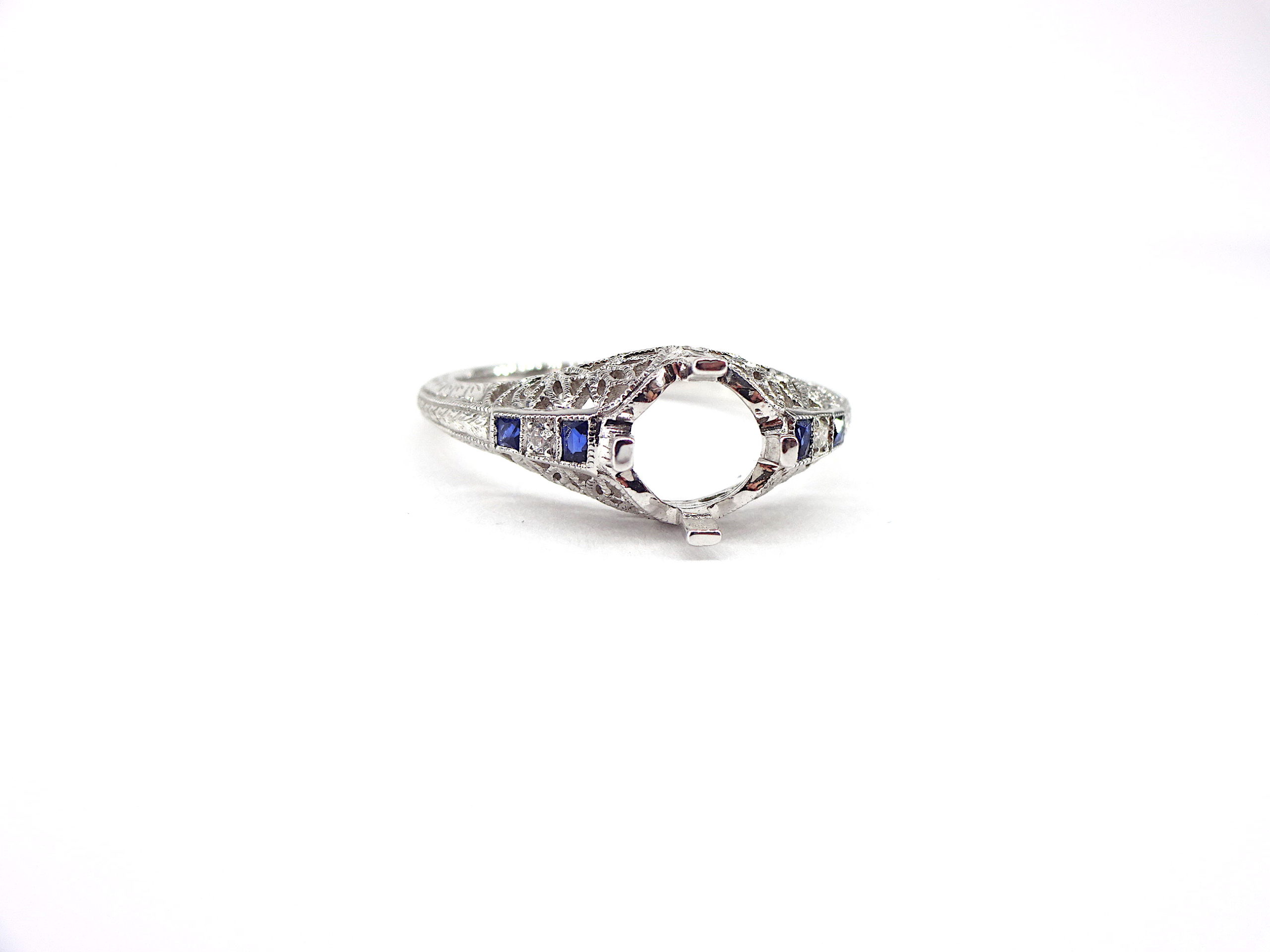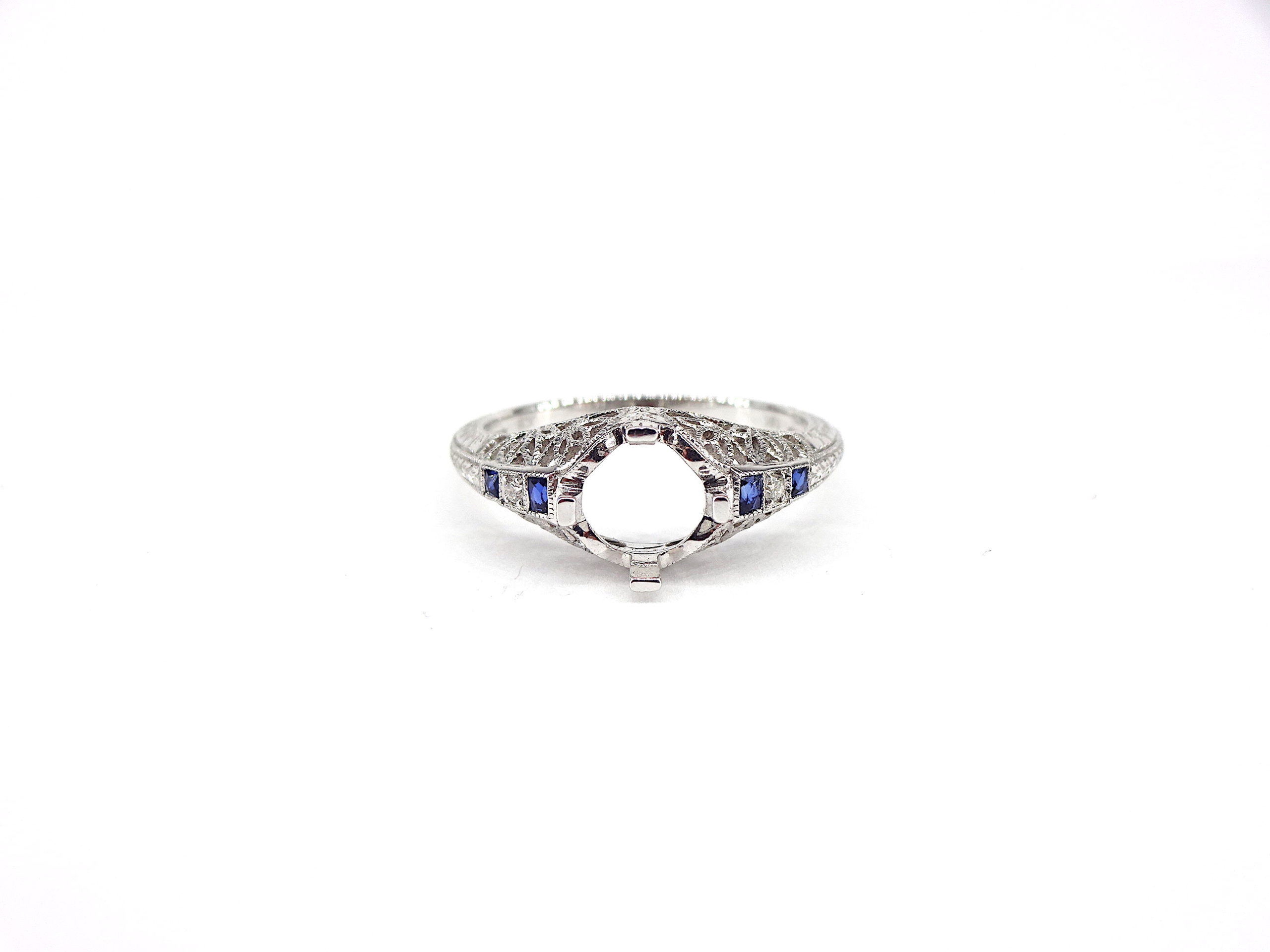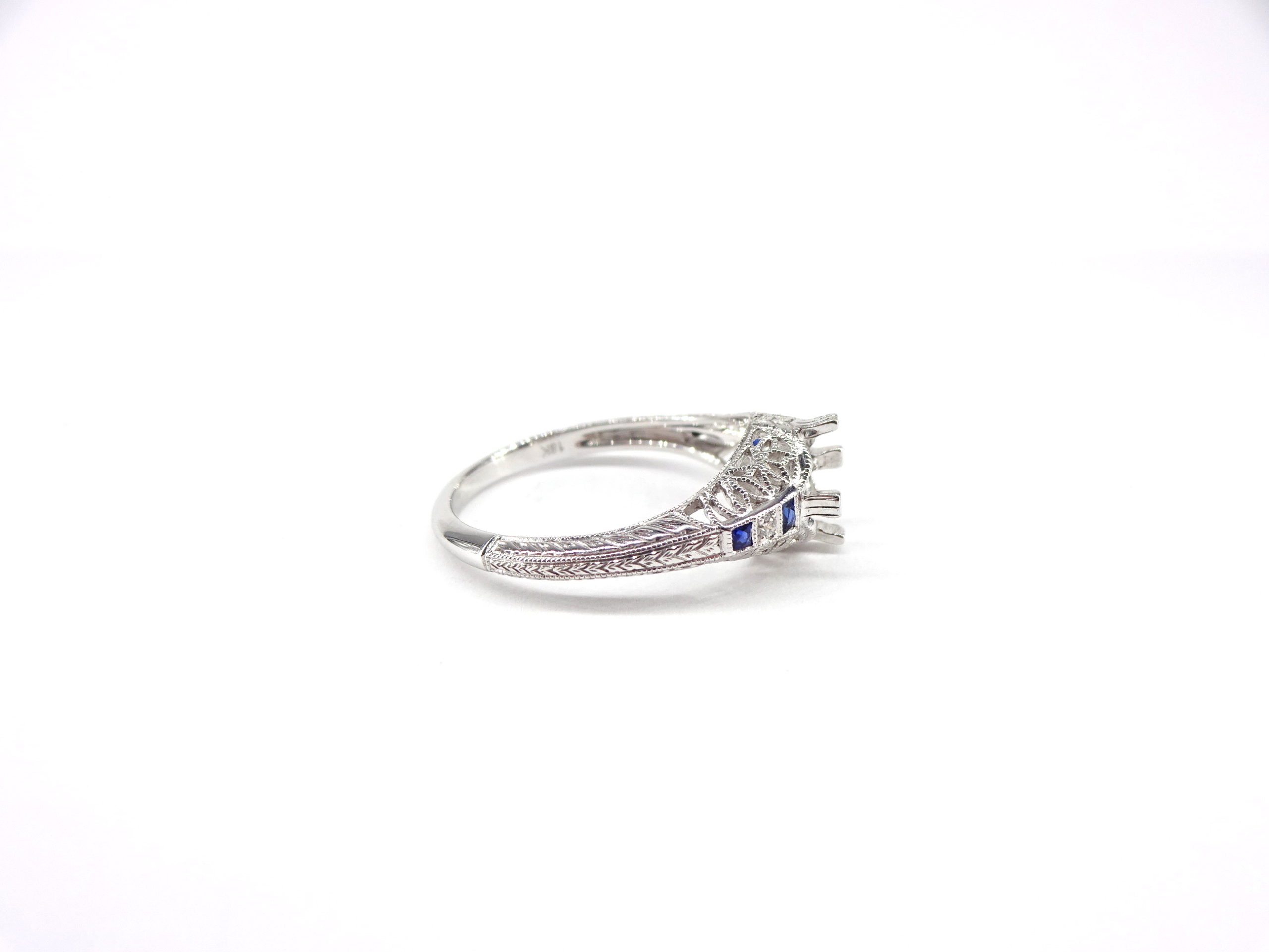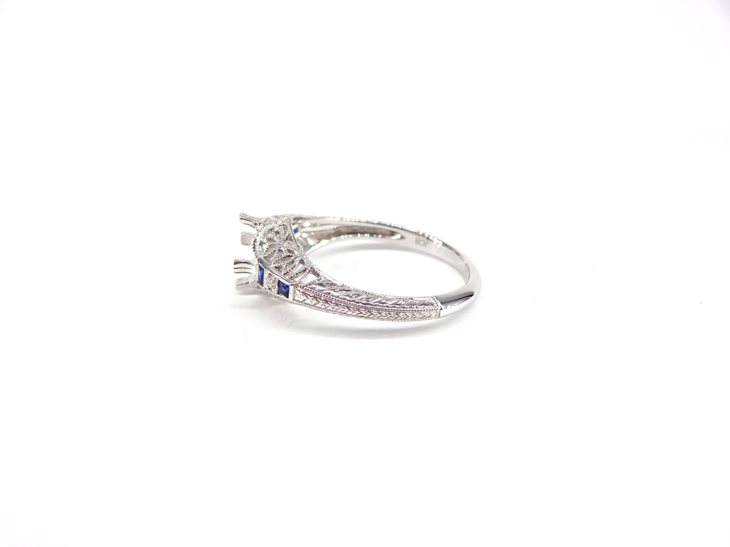 / 18k White Gold Diamond Sapphire Semi-Mounting