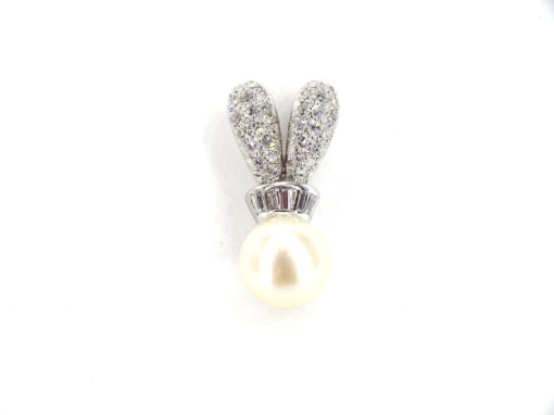 14k White Gold Cultured Pearl/White Sapphire Pendant