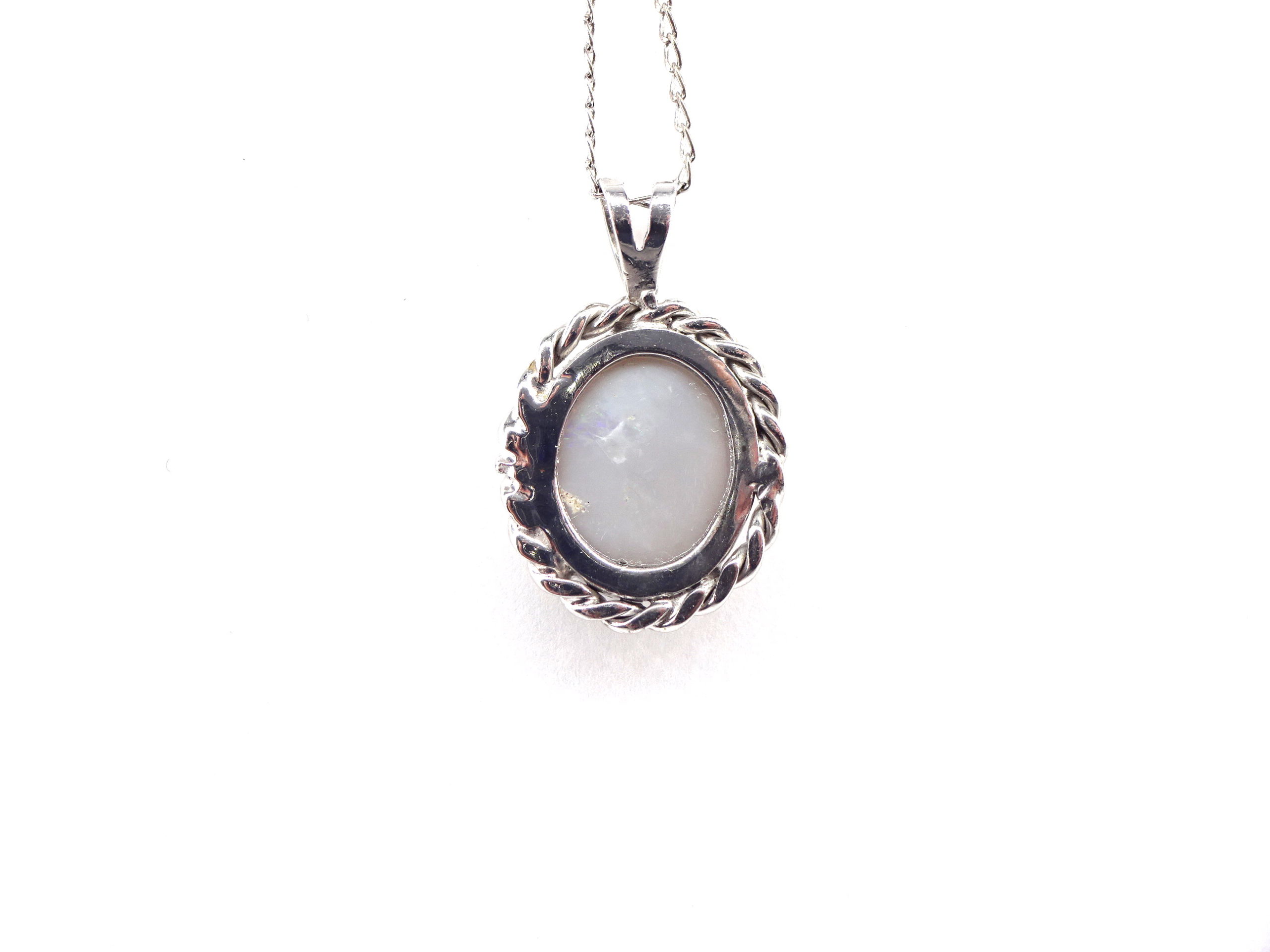 18k White Gold Opal Pendant and Sterling Silver Chain