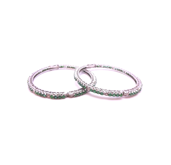 Beautiful Emerald and Diamond White Gold Bangles