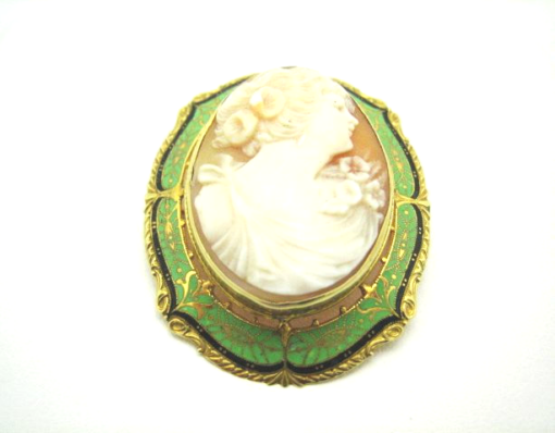 / Beautiful Cameo Black and Green Enameled Brooch