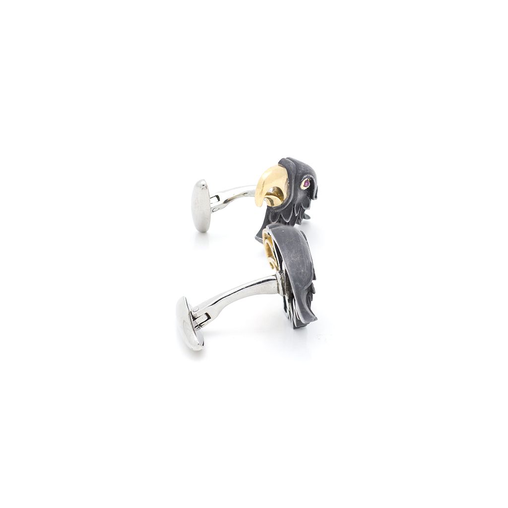 / Eagle Shaped Gold-Plated Silver Two-Tone Cufflinks