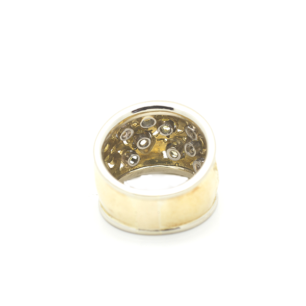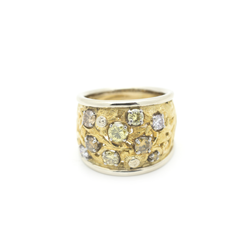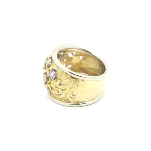Multi Colored Diamonds Engraved Two Tone 18K Gold Ring