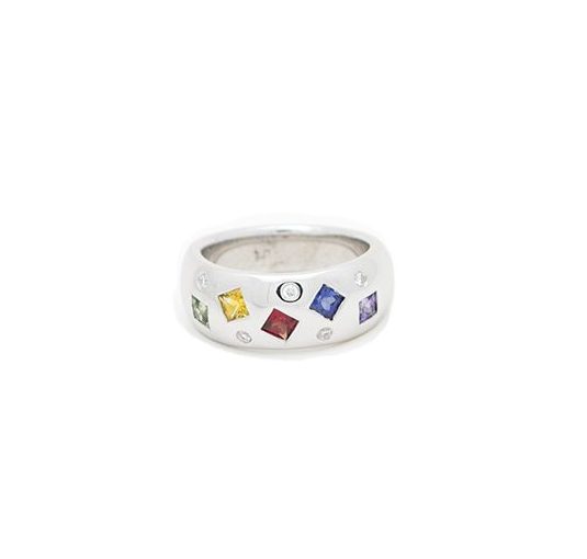 / Sapphire Ruby Diamond 18K White Gold Ring