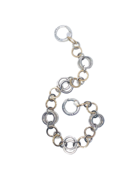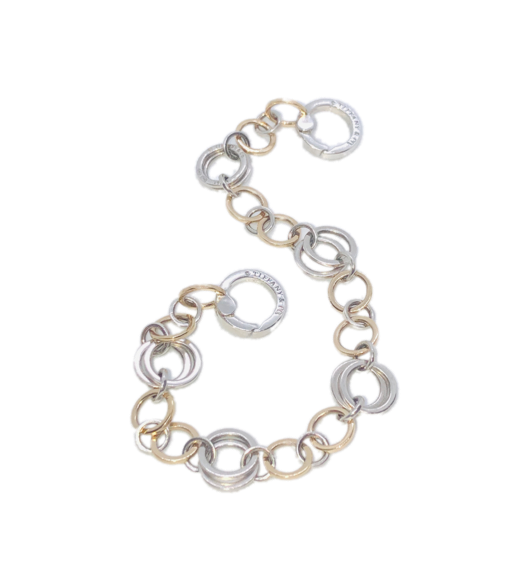 • Two Tone 18K Yellow Gold and 925 Sterling Silver Circle Link Bracelet